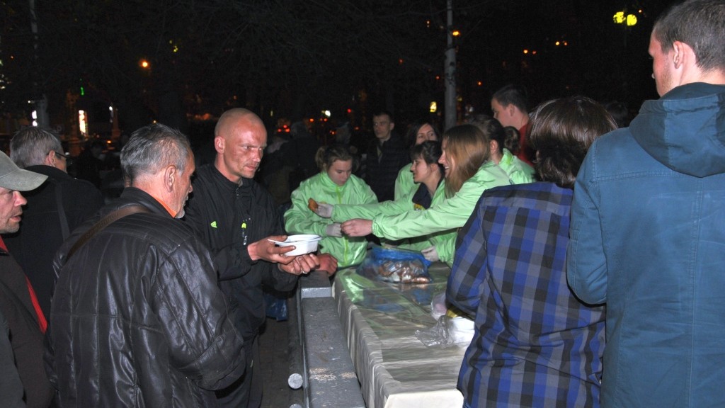 После того как был накормлен последний нуждающийся, ребята пообщались друг с другом, познакомились поближе, исполнили на гитаре несколько песен, попили лимонаду. Совместно сделанное доброе дело скрепляет узы настоящего товарищества, и несмотря на поздний час, никому не хотелось расходиться.