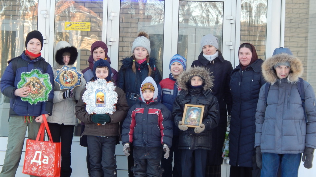 7 января учащиеся детской воскресной школы вместе с прихожанами храма совершили обход палат Центральной городской больницы имени Гольца г. Фрязино. Разбившись на группы ребята обошли 8 отделений в двух корпусах больницы. Они поздравляли больных с праздником Рождества Христова, исполняли рождественские стихи и песнопения. Каждому пациенту дети вручили небольшой подарок.