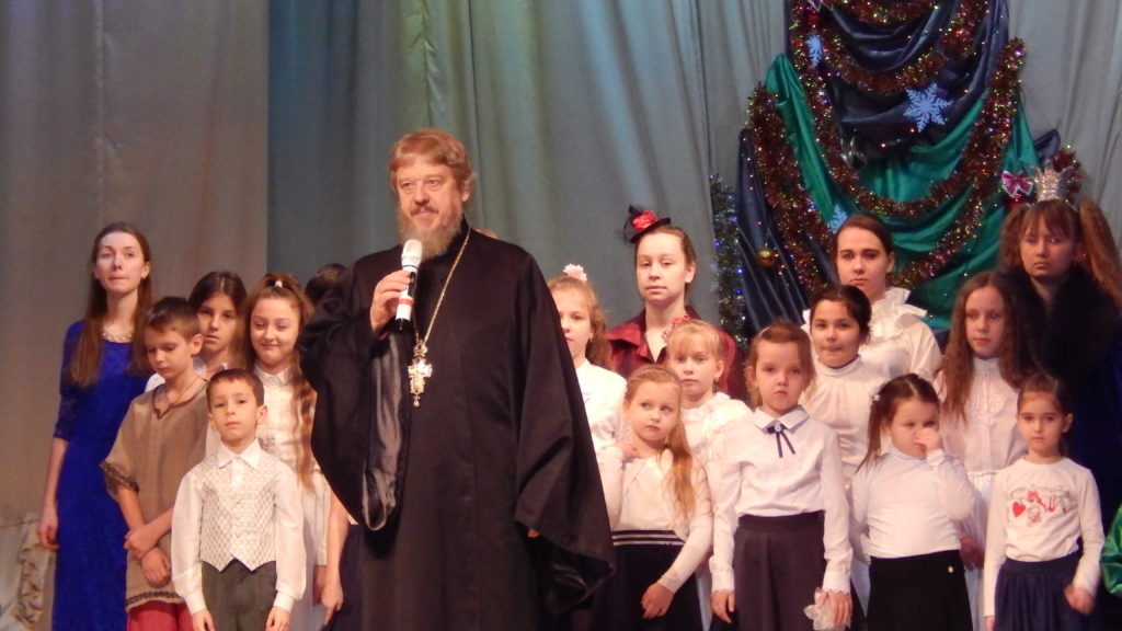В городском Доме Культуры «Факел» собралось множество детей с родителями, бабушками и дедушками на концерт, представленный воспитанниками Воскресной школы храма Рождества Христова Наукограда Фрязино. Славление Христа открыла детская группа церковного хора. Были исполнены проникновенные колядки о Родившемся Богомладенце – Спасителе мира. Затем концерт продолжили сольные выступления: на скрипочке представил свое мастерство воспитанник старшей группы Глеб Горячев. Далее хореографическая группа исполнила забавный шуточный танец снеговиков.