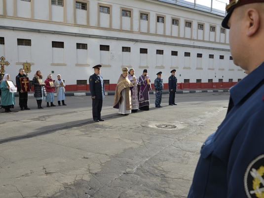 Празднование Престольного дня в Крестовоздвиженском храме СИЗО-1 «Матросская Тишина» началось с Божественной Литургии, по завершении которой Крестным ходом духовенство, руководство, волонтеры и подследственные направились к строящемуся храму в честь иконы Божией Матери «Всех скорбящих Радость», где был отслужен праздничный молебен. По сложившейся традиции старший священник СИЗО — 1 » Матросская Тишина » протоиерей Сергий Киселев поздравил весь личный состав учреждения с особым днём в календаре — Престольным Праздником первого храма в СИЗО и по благословению Председателя Синодального отдела Русской Православной Церкви по тюремному служению епископа Красногорского Иринарха вручил начальнику следственного изолятора Сергею Леонидовичу Поздееву и его заместителю Игорю Юрьевичу Передерину Благословенные Грамоты за активное участие в деле строительства на территории СИЗО православного храма и содействие Русской Православной Церкви в духовном окормлении заключённых.