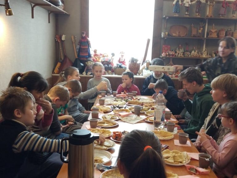 В воскресный день после Божественной Литургии воспитанники Воскресной школы собрались вместе с педагогами и родителями на праздничное чаепитие с блинами. Началось все с конкурса блинов, в котором победу одержала Аня Назарова с мамой Еленой. Также для детей были подготовлены викторины и игры. В завершение ребятам напомнили о приближении благодатного периода великого поста, с ними поговорили о доброделании, воздержании и особом внимании к своим поступкам. Дружеские и теплые встречи по случаю различных праздников и чаепития в Воскресной школе очень плодотворно влияют на укрепление единства коллектива.