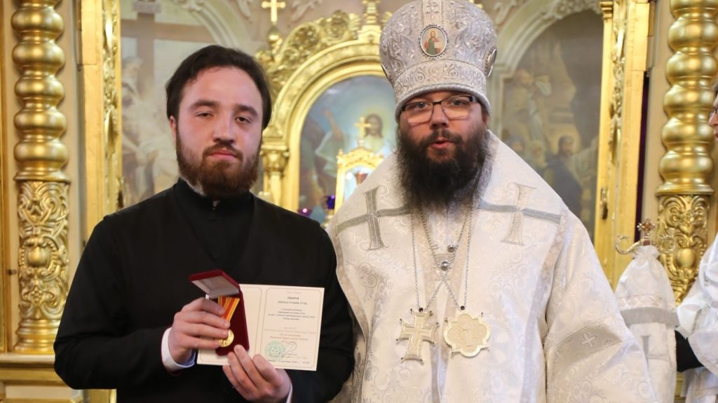 В субботу 6-й седмицы, Воскрешение праведного Лазаря, в храме Рождества Пресвятой Богородицы во Владыкине архиепископ Егорьевский Матфей совершил Божественную Литургию, по завершении которой удостоил наград священнослужителей и работников храмов, потрудившихся на благо Церкви Христовой в период распространения вредоносного поветрия. За миссионерско-просветительскую деятельность владыка Матфей наградил нашего алтарника Бориса. Сердечно поздравляем Бориса с такой высокой наградой!