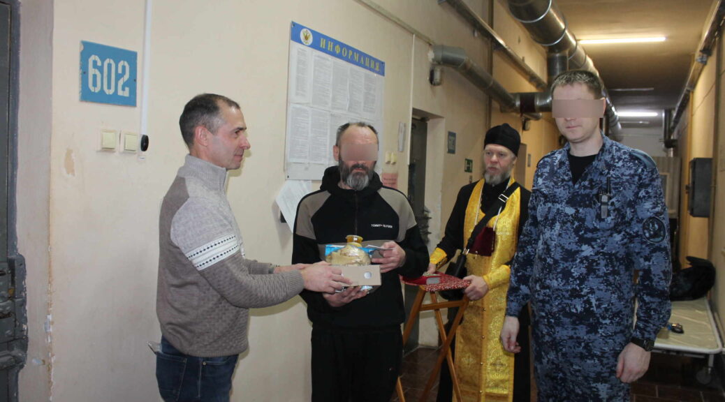 В преддверии Великого Поста прихожане нашего и некоторых других столичных храмов испекли блины, а также передали мед, варенье и сметану, а добровольцы Русской Православной Церкви и Общества милосердия в тюрьмах «Вера, Надежда, Любовь» пришли в темницу, чтобы вместе со священниками — прот. Сергием Киселевым, о. Андреем Дорохиным, о. Георгием Мицинским и о. Сергием Кулагой — помочь в раздаче собранных гостинцев, в первую очередь тем, кто болен туберкулезом и другими серьезными заболеваниями, а также заключенным, подследственным и сотрудникам изолятора.
